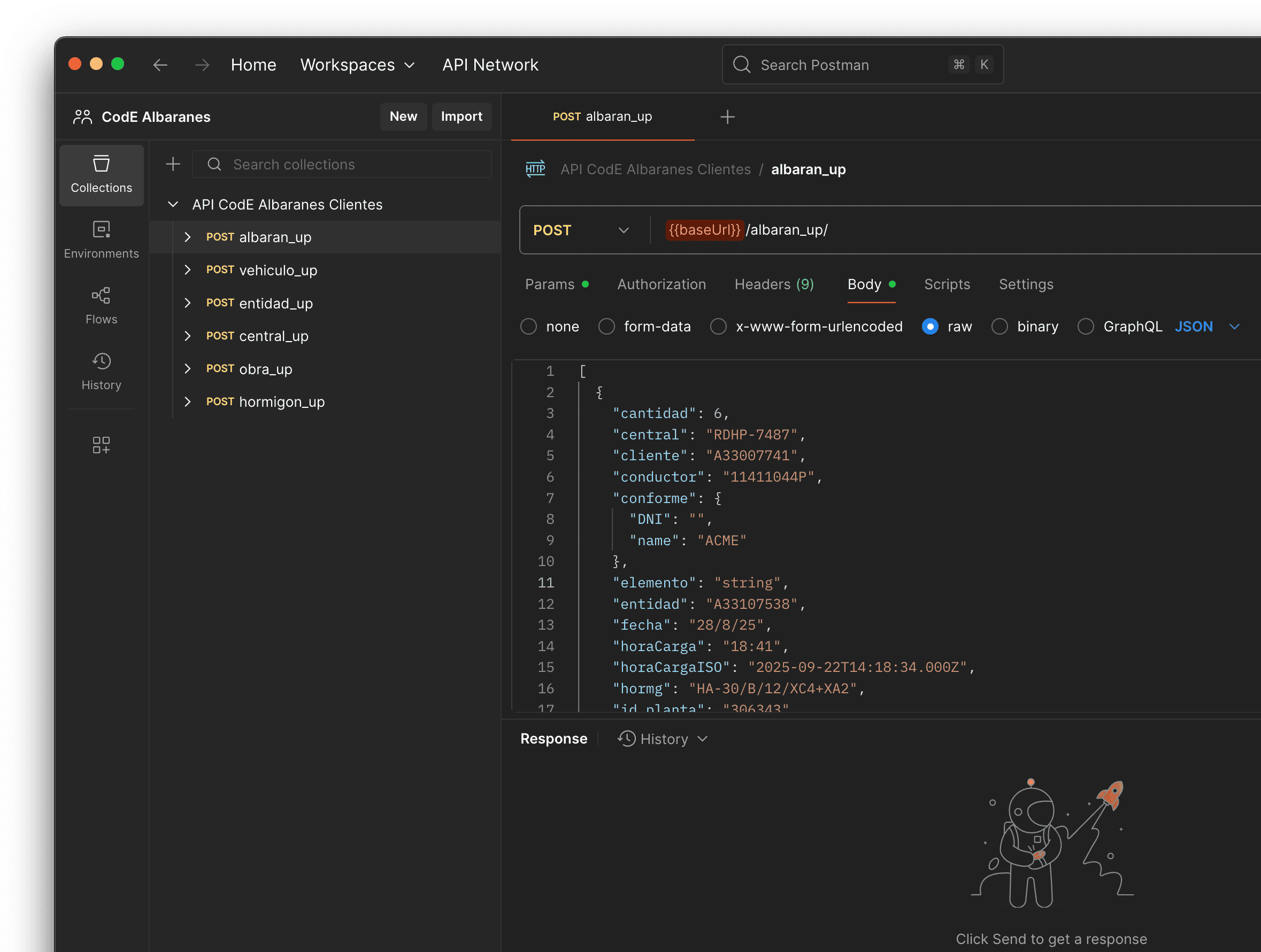 En ella encontrarás ejemplos de llamadas reales a los endpoints principales: alta o actualización de albaranes, sincronización de vehículos, etc.
